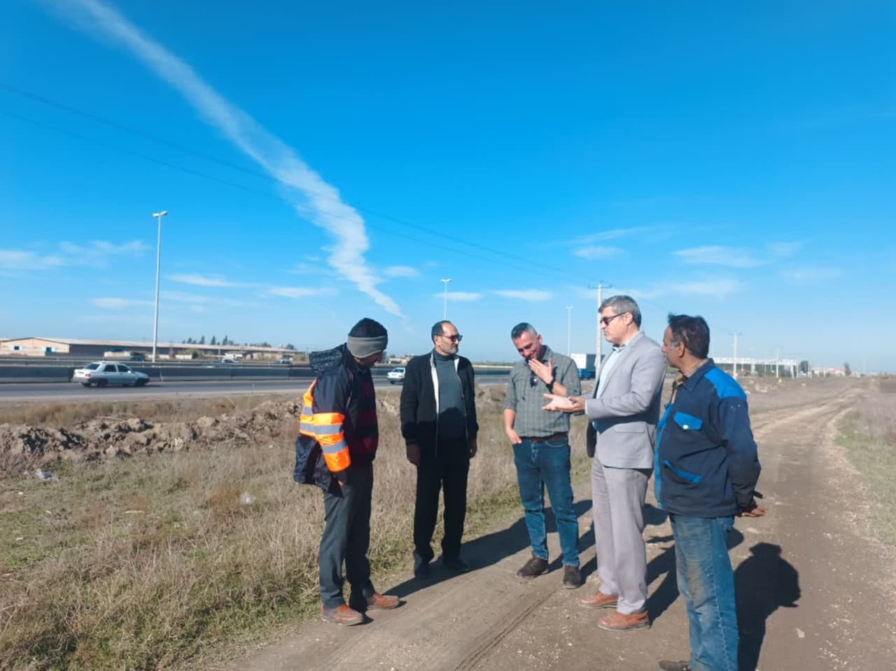 بازدید کارشناس اداره کل راهداری و حمل و نقل جاده ای استان به همراه مهندس قره جانلو رئیس اداره راهداری و حمل و نقل جاده ای آزادشهر به اتفاق مهندس نریمانی شهردار و کاویانپور رئیس شورای اسلامی نگین شهر از محل شهرک صنعتی نگین شهر جهت رفع مشکل استعلام برق این مجتمع.