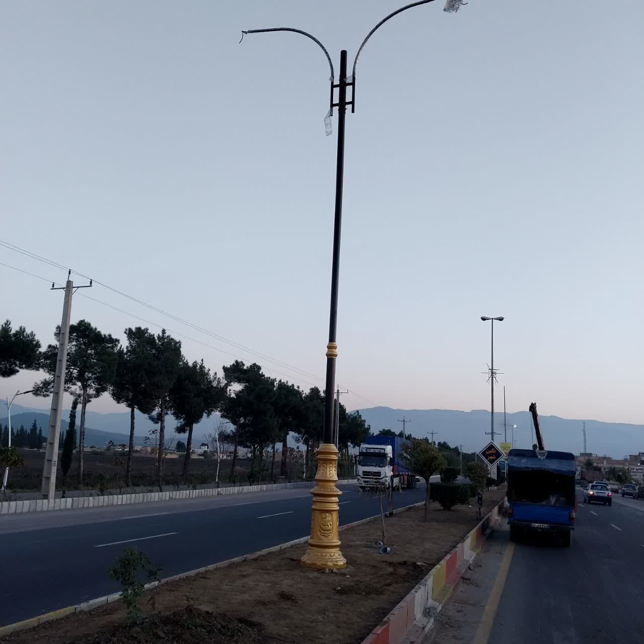 آغاز عملیات نصب تیرهای دکوراتیو روشنایی بلوار شهید اسودی در محدوده شهر نگین شهر